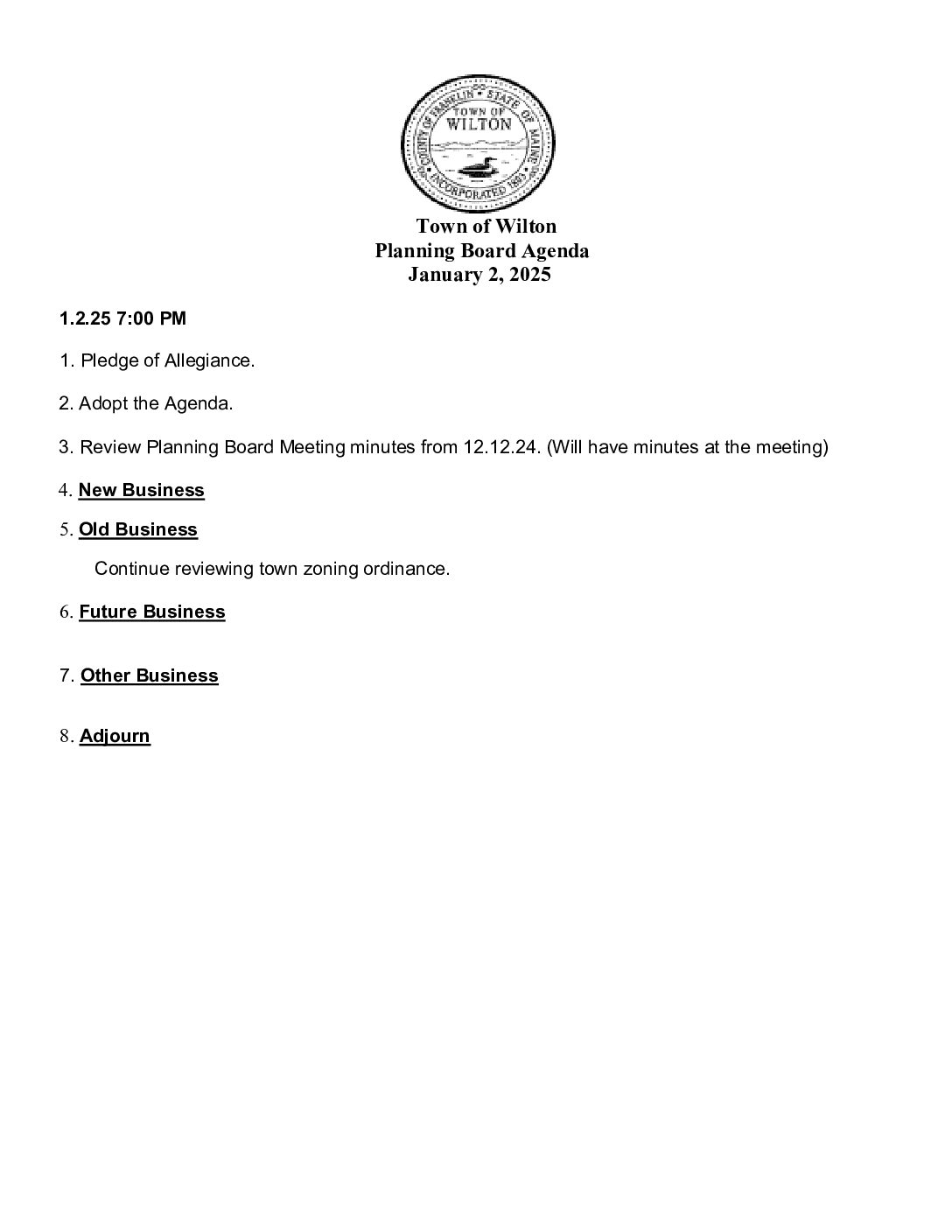 Planning Board Agenda 01-02-25