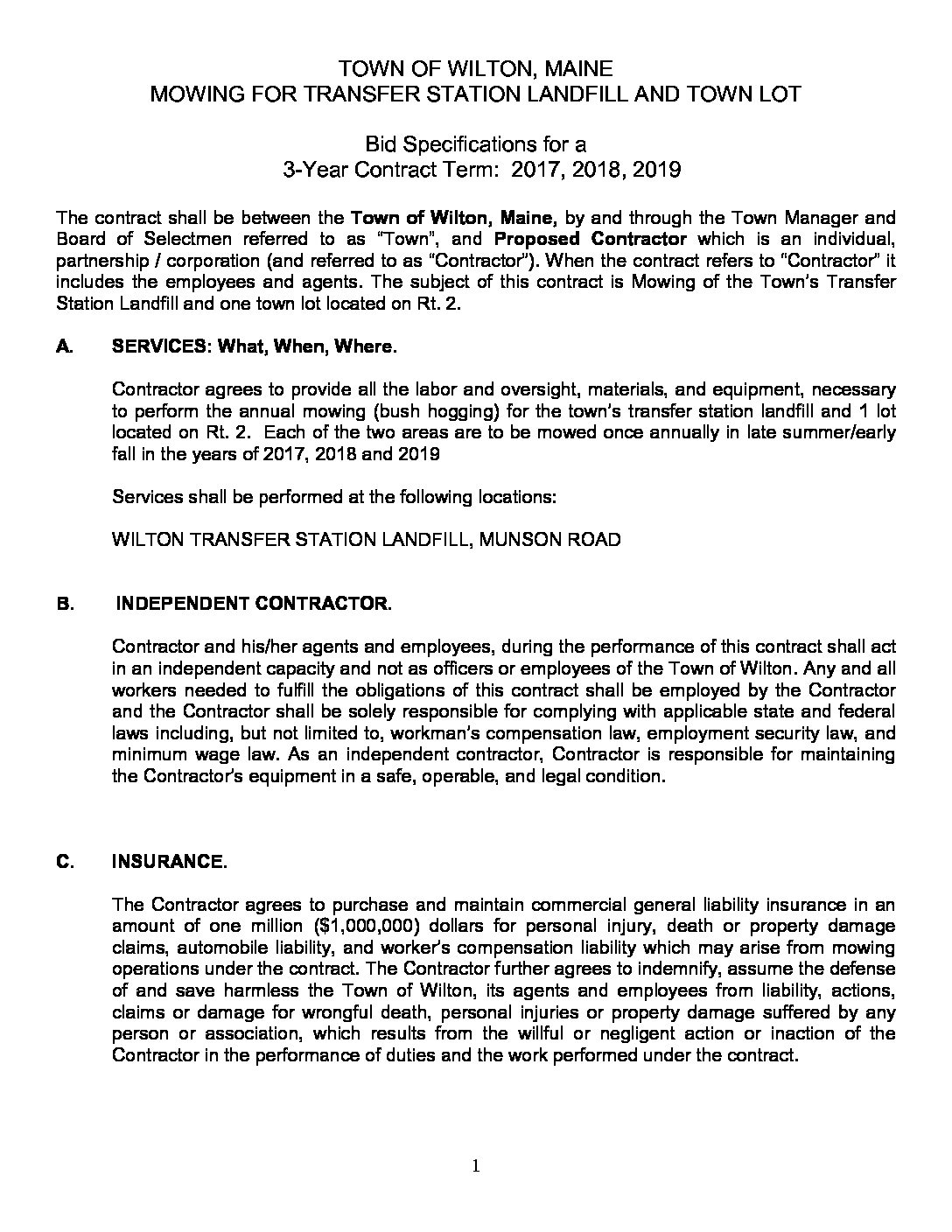 Bid Specifications 3-year Transfer Station Mowing Contract 2017