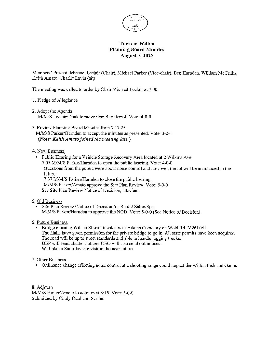 Planning Board Minutes 08-07-2025