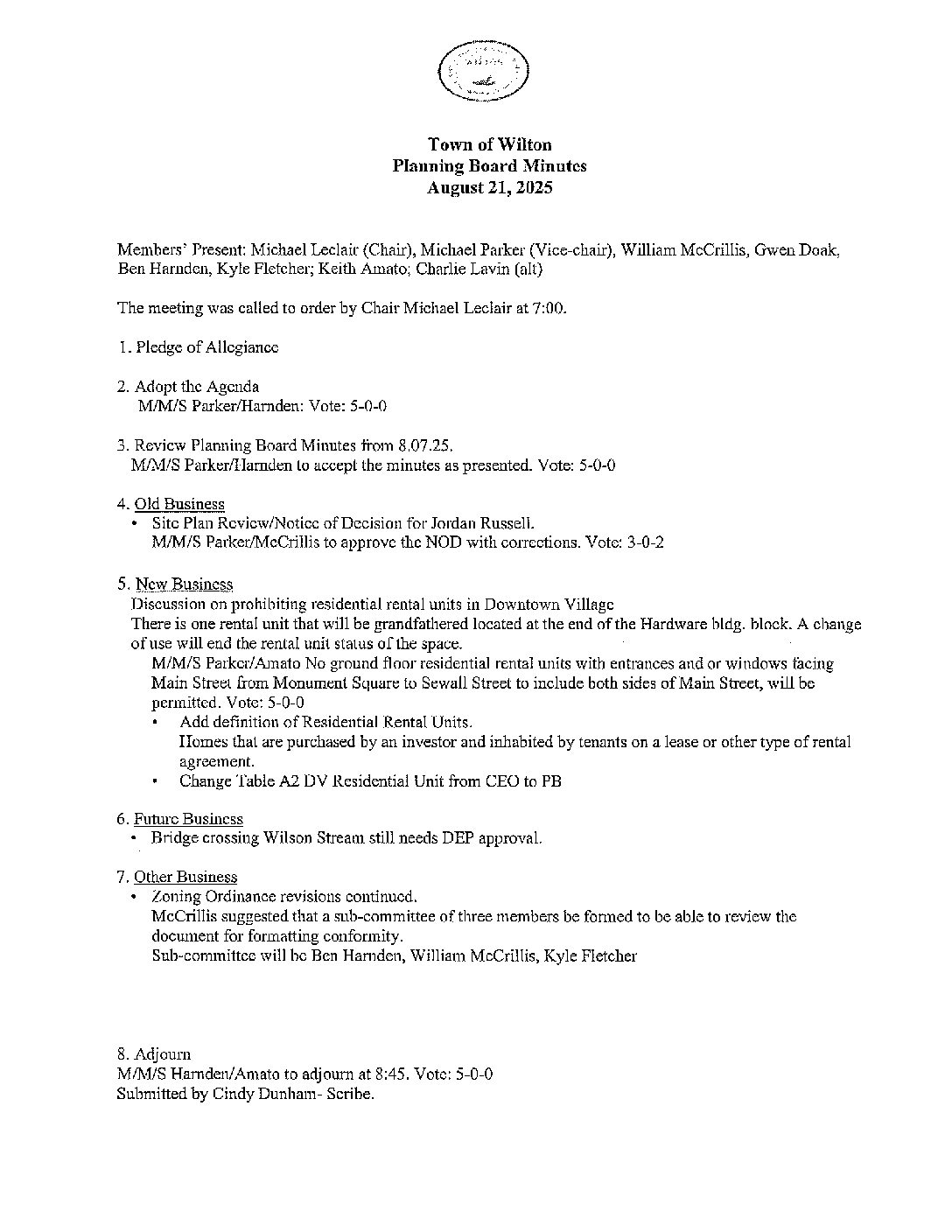 Planning Board Minutes 08-21-2025