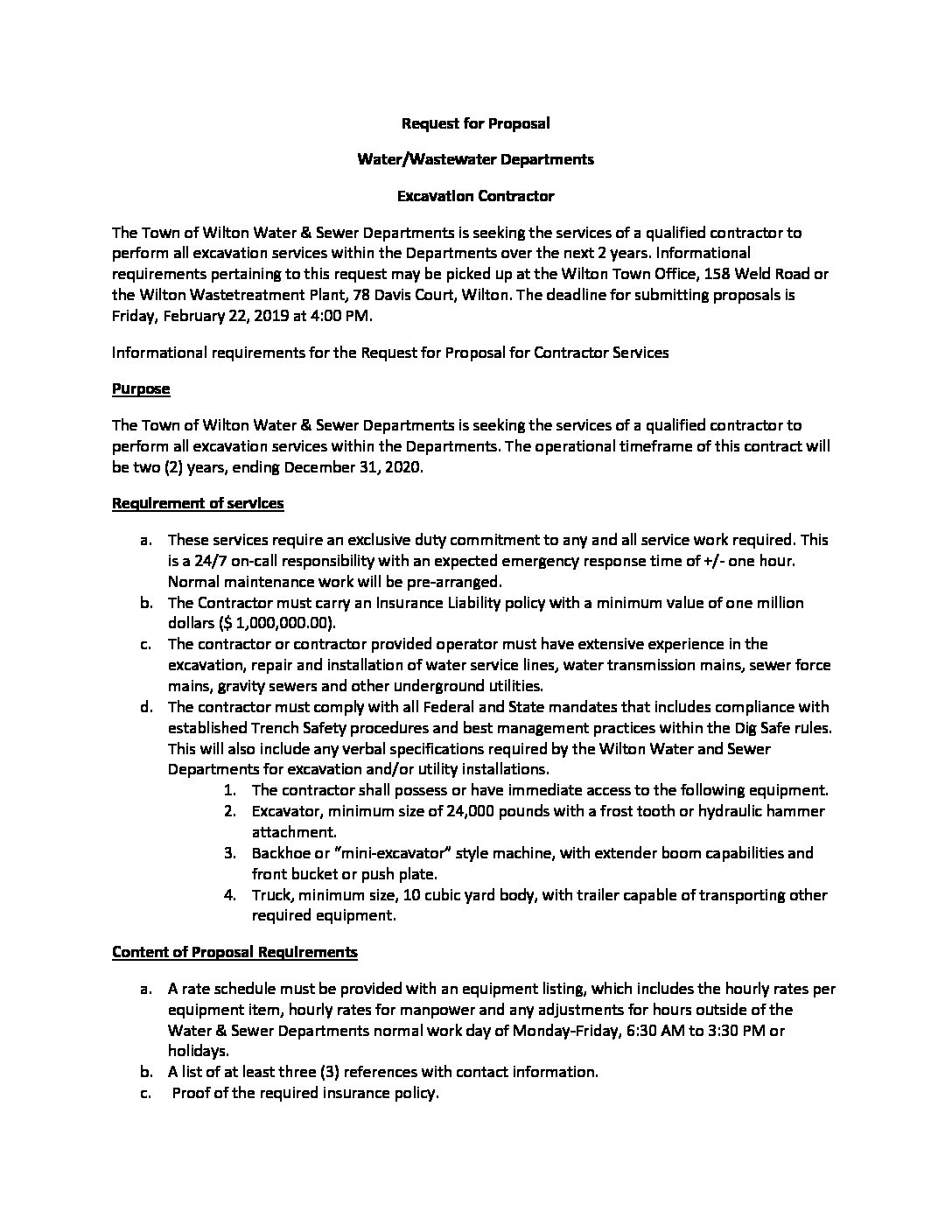 Request for Earthwork Contractor Proposal