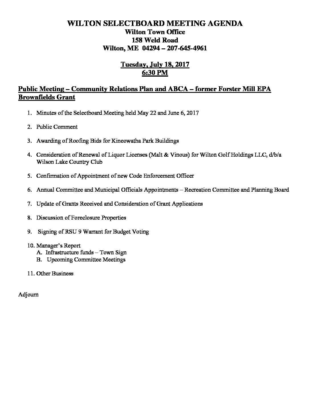 Selectboard Agenda, July 18, 2017