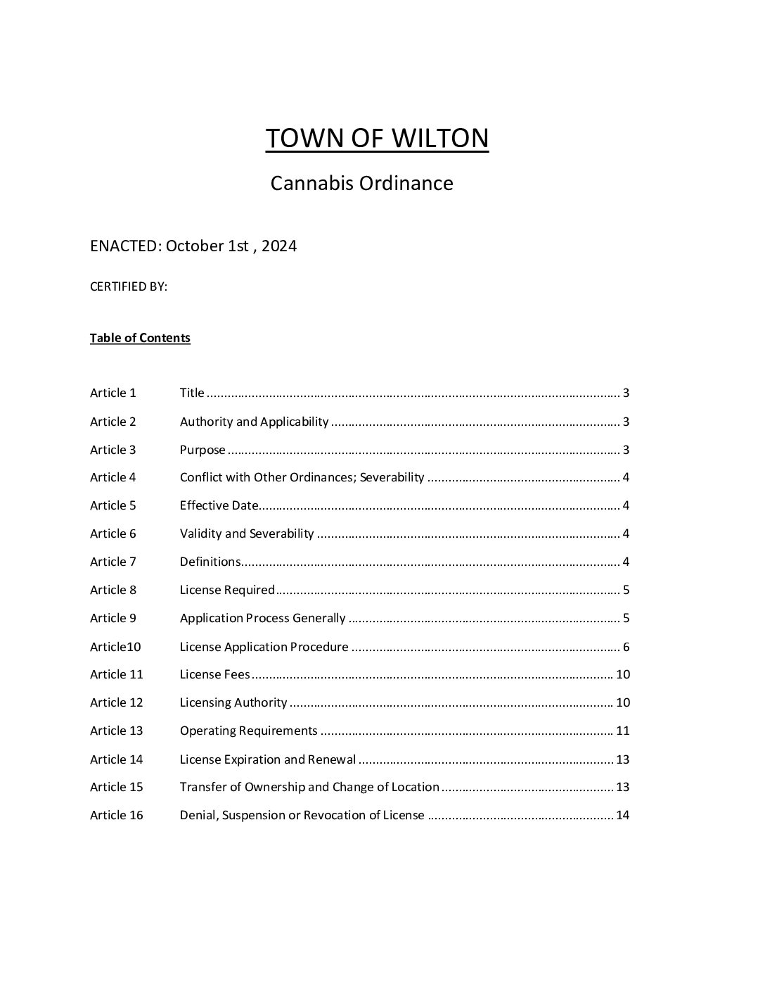 Town of Wilton Adult Use and Medical Marijuana Ordinance – FINAL 2024 (Attny notes incorporated)
