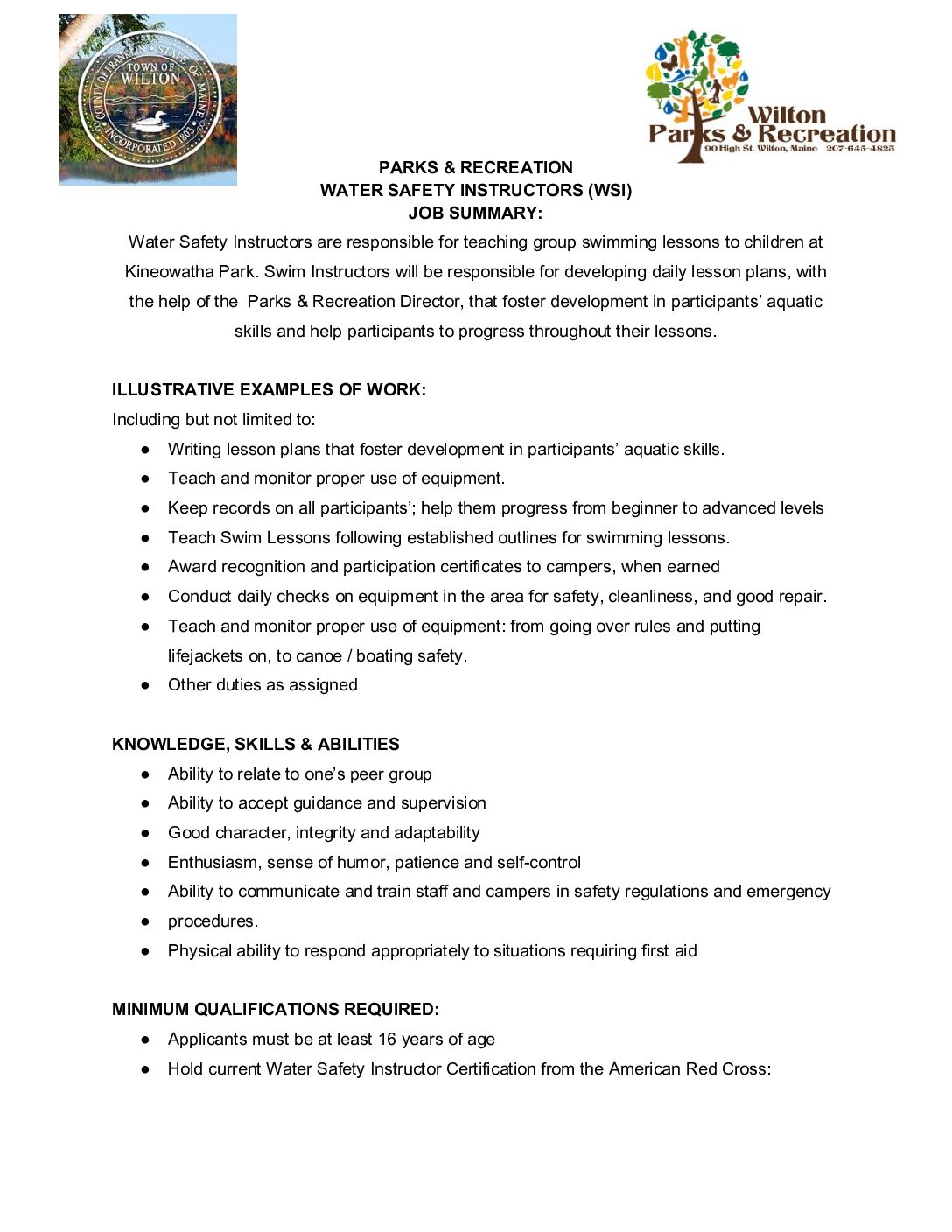 Water Safety Instructor Job Description
