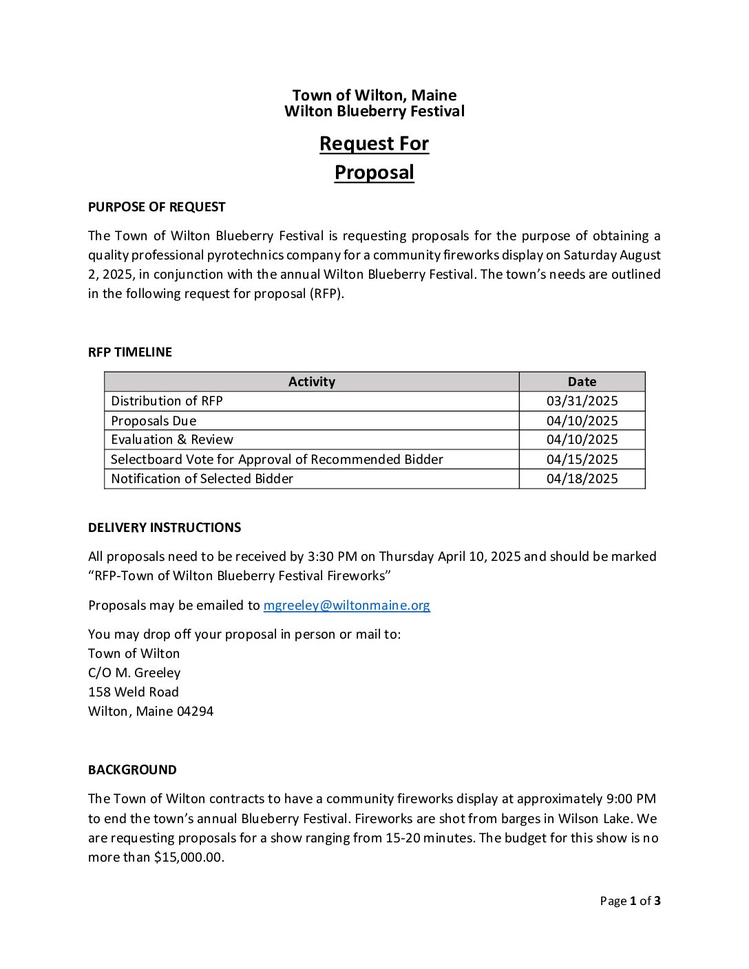 Wilton – 2025 BBF Fireworks RFP – Due April 10, 2025