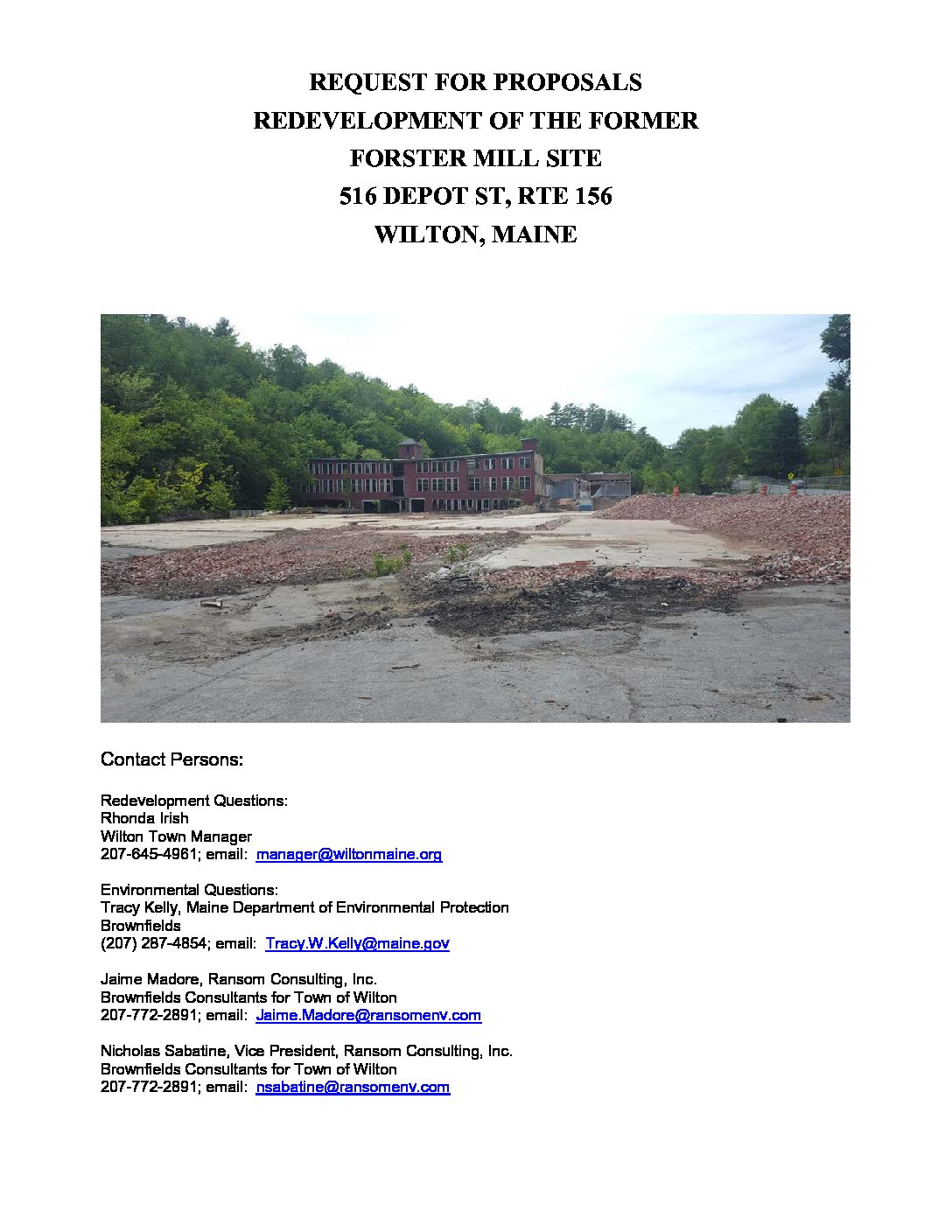 Wilton Former Forster Mill Site RFP Aug 2018