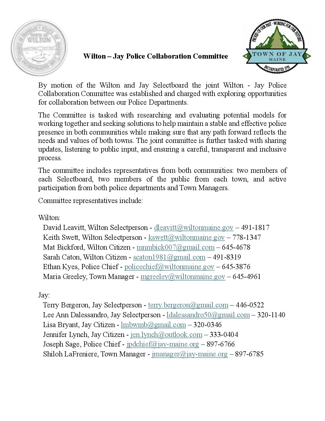 • Wilton-Jay Police Collaboration Committee