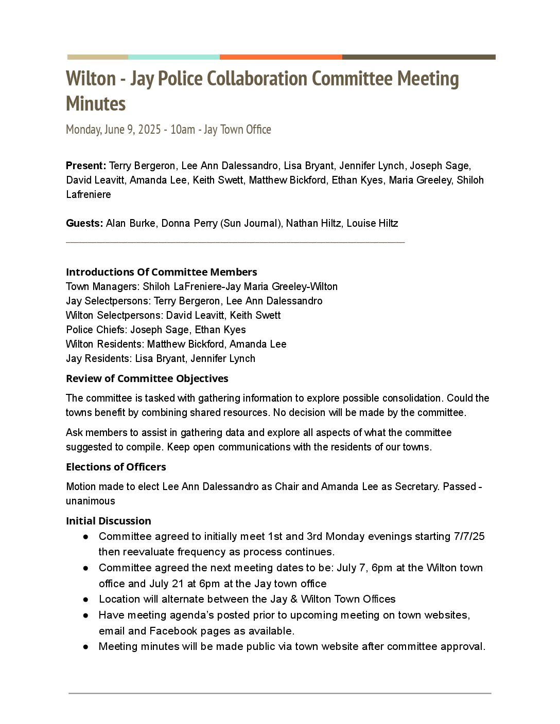 Wilton – Jay Police Collaboration Committee Minutes 06.09.2025