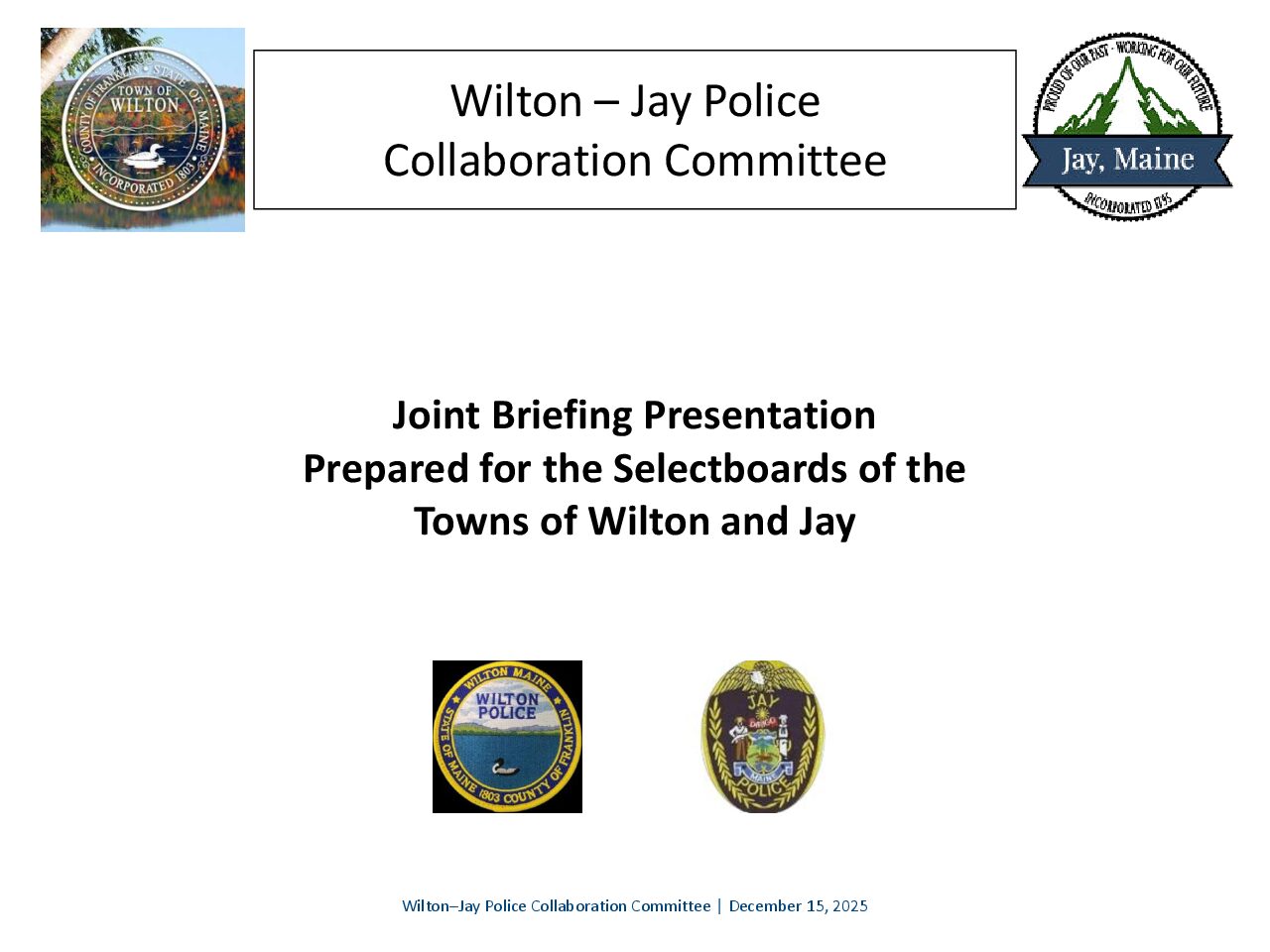 Wilton/Jay Police Collaboration – Select Board Briefing
